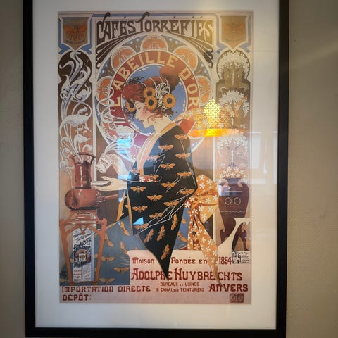 Profesjonelt innrammet Joan Miró-plakat kjøpt på Fondation Maeght i Frankrike. Innrammingen alene kostet 800 kroner.