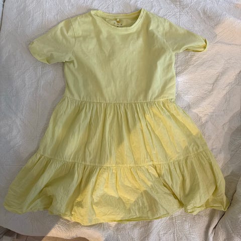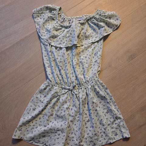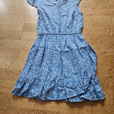 Søt viskosekjole med strikk i livet og knapp i nakken i str 140 fra H&M.