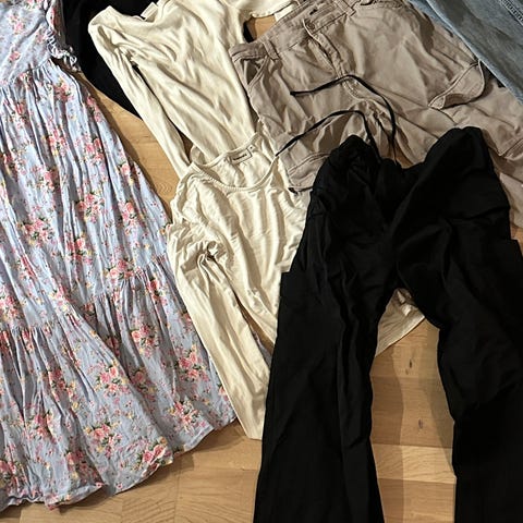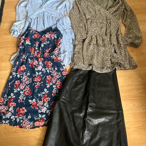Selger to kjoler som er lite brukt og to bukser i str XL, den ene buksen har noen merker (se siste bilde) men det syns ikke når du har den på, alt selges samlet for kr 200.