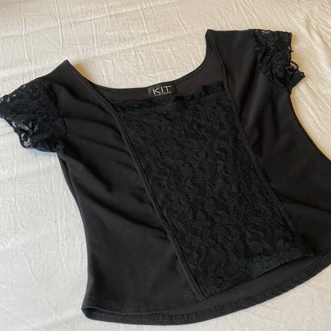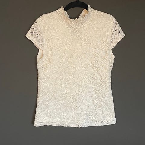 Ravn hvit / krem farget blonde topp, størrelse ca medium. Toppen har en flekk foran som vist på bildet
