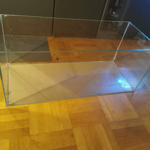Avviklet akvarium som nå er klargjort for salg.