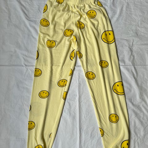 Samii Ryan tynn gul crewneck / collegegenser med smiley smilefjes motiv, kjøpt på Dollskill. Vil muligens passe en medium også. Har også buksene som matcher