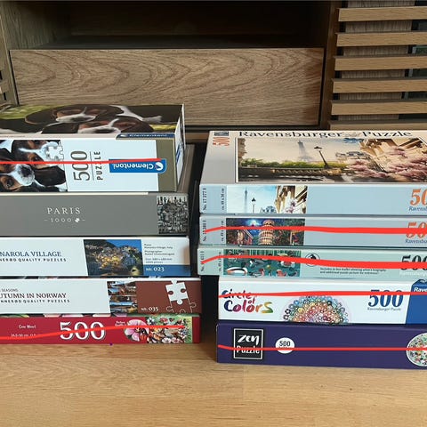 Puslespill 1000 brikker til salgs. Oppgitt pris pr stk.