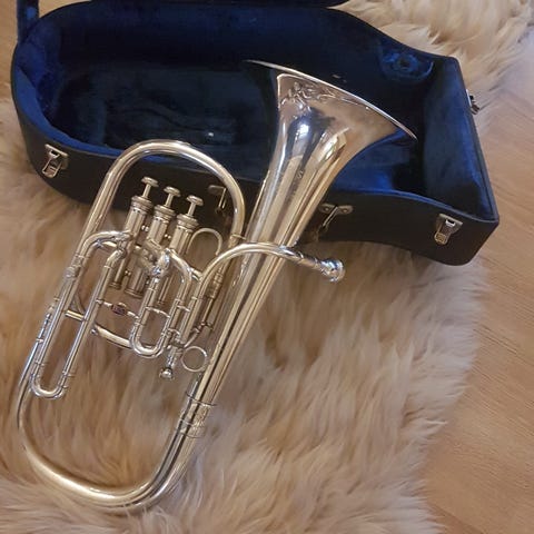 Nytt munnstykke, sølv med gullrim, str MB4-H selges. Kommer i orginal eske, er kun testet en gang. Ingen merker eller skader.