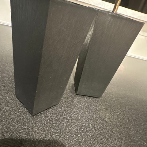 Nydelig, laget i tre og skinn. Akkurat som bildene men i sort.