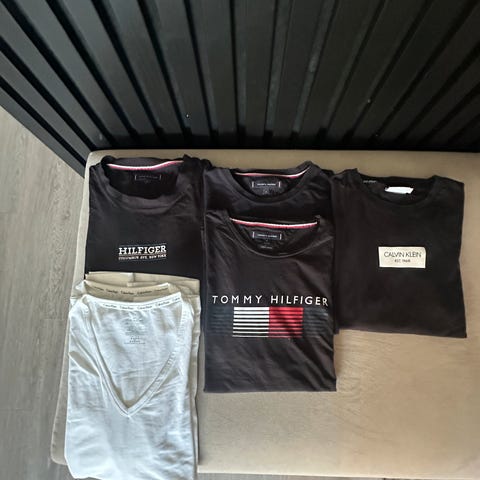4 levis T-skjorte og ei Tommy jeans. Str XL, selges samlet.