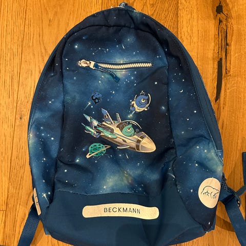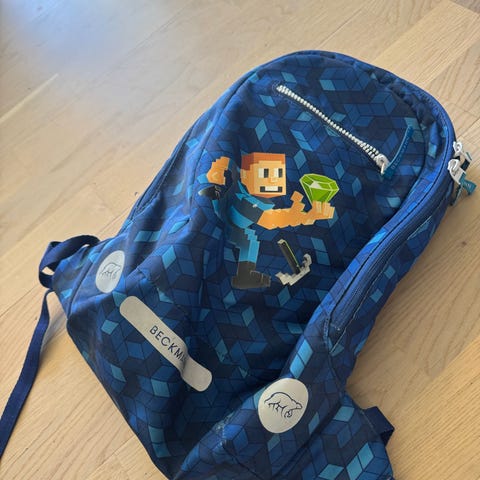 Pent brukt, men vasket tursekk 12 liter. Kan monteres utenpå skolesekk fra Beckmann (se annen annonse).