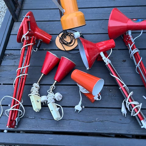 Selger 3 stk flotte Luxy H1 taklampe i klassisk rød farge fra den italienske produsenten Rotaliana. Dette er en tidløs og funksjonell designlampe med justerbar arm og solid konstruksjon i metall. Passer perfekt over skrivebord, i stue, på hjemmekontor eller som dekorativ belysning. Jeg har brukt de over kjøkkenbenk