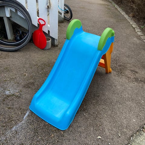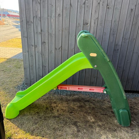 💦 Har tilkobling for vannslange – kan kobles til hageslange slik at den blir en vannsklie på varme sommerdager.