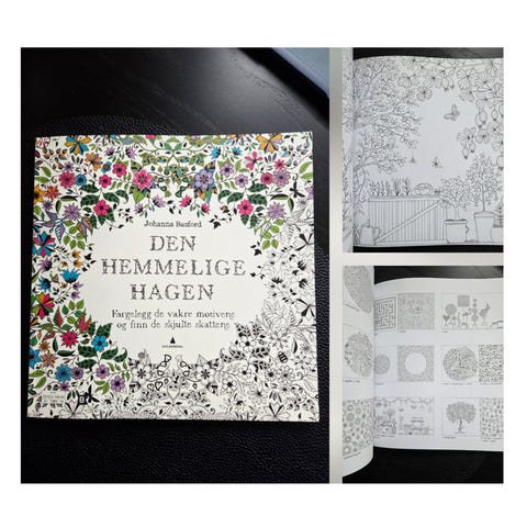 OBS! Det er én side i boken som er fargelagt fra før. (Skal man gi den bort, så går det evt an å klippe ut denne.)