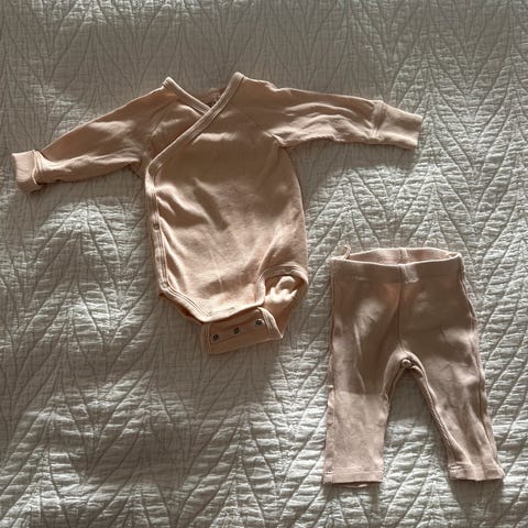 Selger en pent brukt body og bukse fra Lindex, farge lilla. Ingen feil eller annerkninger. Praktisk body med forlengelsesknapper og omslag som gjør at babyen kan ha bodyen lenger og man slipper å ta den over hodet.