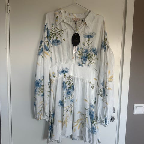Kepaza «Camilla» kjole str L. Nydelige ermer. Kan knytes foran eller bak. (Blå, turkis, beige, hvit)