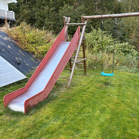 Klatretårn/lekehytte med sklie og klatrevegg i god stand selges.