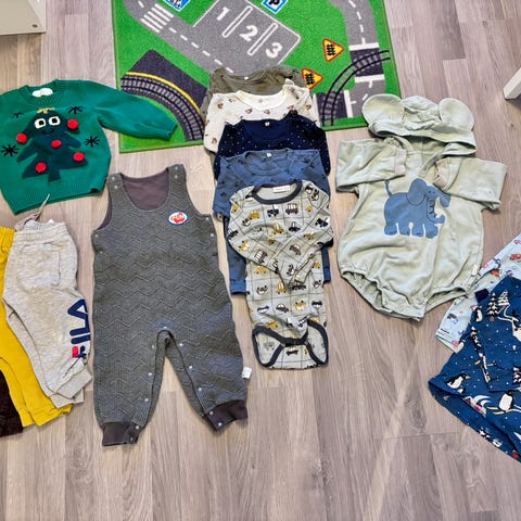 2 sett er i str 86, 1 body er i str 80. Resten er i str 92.