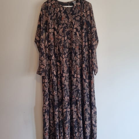 Svart kjole med brune blomster og med lommer fra Lindex.100% viskose.