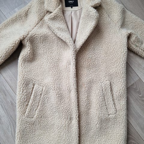 Pen jakke fra only, hvit med mønster i mørkeblått. Pent brukt.