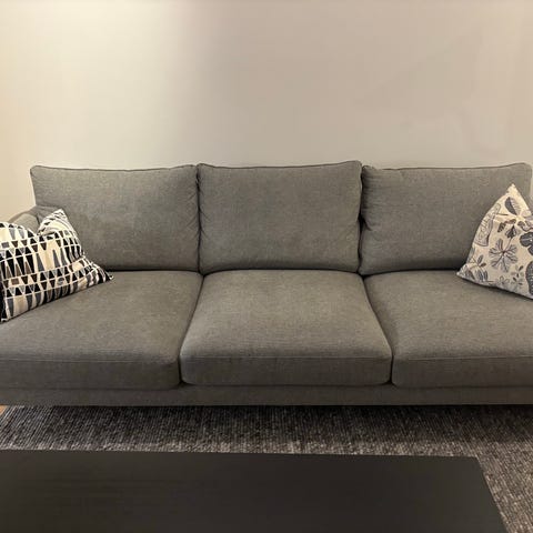 Bohus sofa i beige/brun stoffmateriale. Stor deilig sofaen som har et moderne design med rette armlener og sorte ben. Har kjøpt den i august 2023, men vi vil bytte til hjørnesofa. Bein høyde 14cm. Vi kan hjelpe med transport 🙂