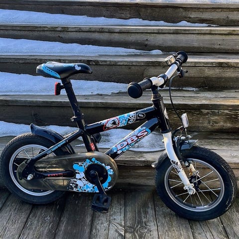 Lite brukt barnesykkel selges da den er for liten. Med kurv foran og dukkesete bak. Støttehjul, her mangler det en mutter til det ene støttehjulet. Hel og fin, trenger en vask.