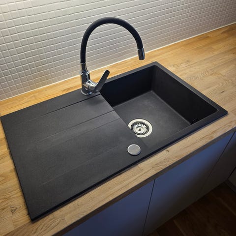 oppvaskkum i stål, sannsynligvis ment for kjøkken eller vaskerom