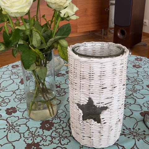 To lyslykter i bjørkenever med klart innerglass til plassering av lys.