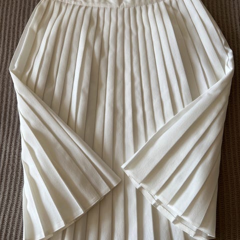 Tuzzi skjørt i hvit farge, størrelse M. Dette skjørtet er laget av et lett og komfortabelt materiale, 2 lag stoff. Innerst bomull, ytters bomull og silke. Splitter i begge sider og foran og bak. . Passer godt til både hverdagsbruk og formelle anledninger. Str 40