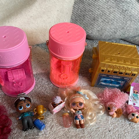 Fine, pent brukte LOL dukker med tilbehør (14 totalt) selges samlet 250,-.