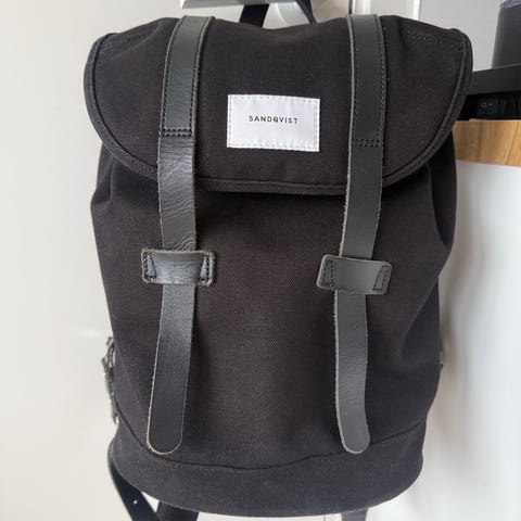 Den er brukt, kan ses litt på skinnet i stroppene der de har vært festet. Ingen hull eller flekker. Pent brukt.