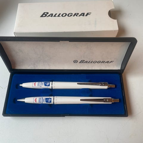 NSBs gaveeske med Ballograf Epoca spesialutgave kulepenn og trykkblyant i anledning OL ‘94. Begge funker utmerket.