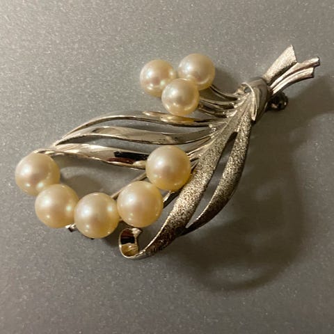 Vtg japansk rodinert sølv brosje / anheng med kulturperler – to smykker i ett!