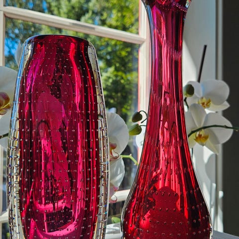 Nydelige glass. Bare 1 har nesten usynlig skade, se siste bilde. Selges samlet for 350 kr. Kan pakke veldig godt og sende med post nord for 69 kr extra porto eller fix ferdig.