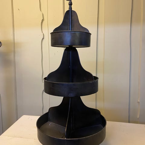Leier ut et 4 etasjers kakefat som også kan gjøres om til 3 etasjer og 2 etasjer, se bilder