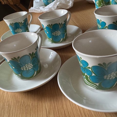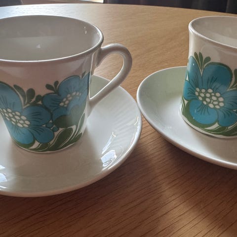 To skåler (nå en skål) til kaffekopp og en sukkerkopp til frokostserviset Tor Viking fra Figgjo selges for følgende priser: