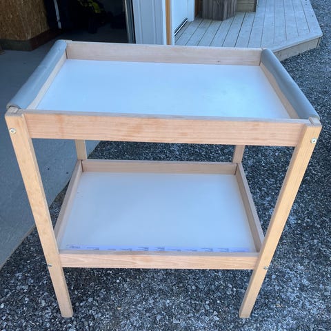 Stellebord med hjul som vi har satt på for å enkelt flytte det. Disse kan enkelt skrues av. Noen synlige bruksmerker her og der