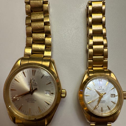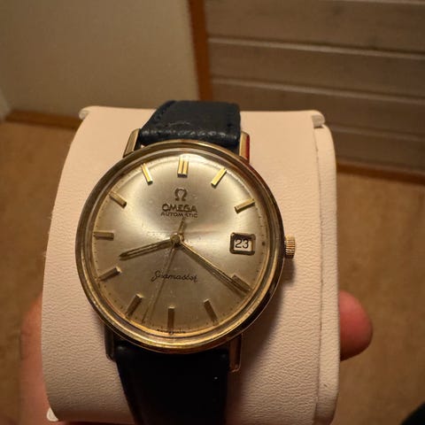 Flott Omega Seamaster dameur i gull doublé selges. Ur automatisk.