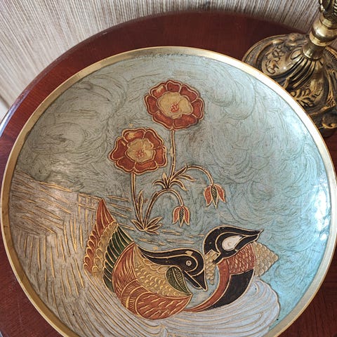 Nydelig Vintage Emaljert Stetteskål i Messing