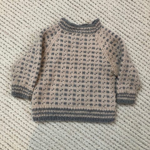 Nydelig hjemmestrikk passer strl 74/80