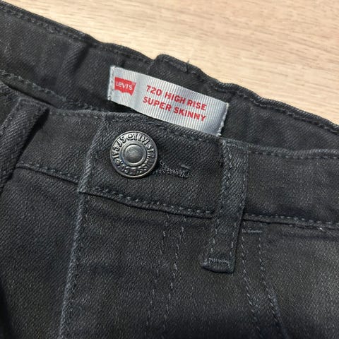 To pent brukte Levi’s bukser i str 146. Det står Ribcage straight 24 i den svarte og tilsvarende men 25 i den blå