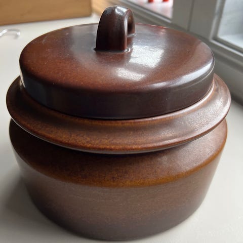 Ildfast gryte/Form. I keramikk med håndtak og lokk