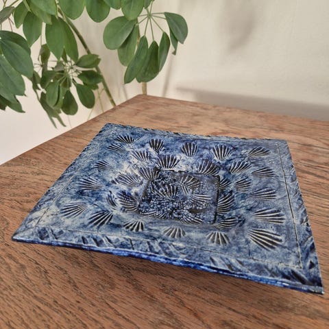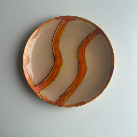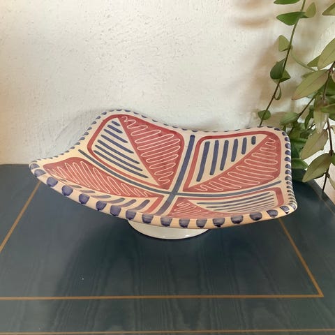 Stilig fargerikt fat selges. Keramikk. Brukskunst. Noe bruksmerker kan forekomme. Selges som det er. Se bilder.
