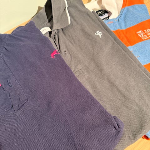 Diverse pique skjorter til overs. I tillegg til denne så har jeg mange andre fra Jean Paul, Helly Hansen, Cottonfield, Levi’s og Mr Capuchin i str M og L så sjekk gjerne øvrige annonser.
