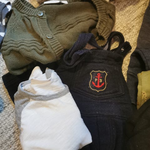 Merker: mesteparten er H&M og cubus. Buksa med mønster på rumpa er Hust&Claire den tynne lua er fra wheat.