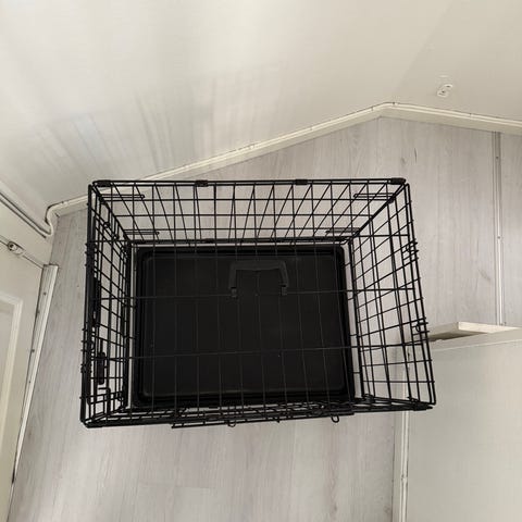 Sammenleggbart hundebur som kun er satt sammen og aldri blitt brukt av hunden vår.