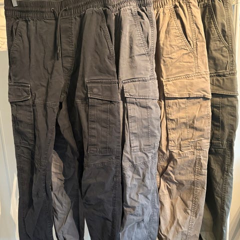 Tre cargobukser fra H&M selges samlet. Størrelse 33 regular. Ubrukte med lapp.