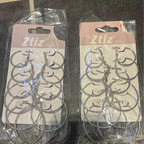 2 sett øredobber brukt av jente.
