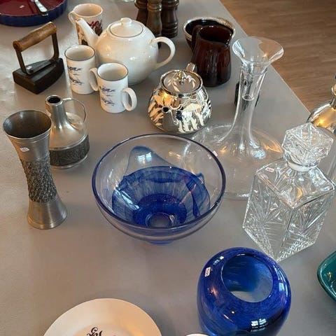 Antikk glassmugge og glass