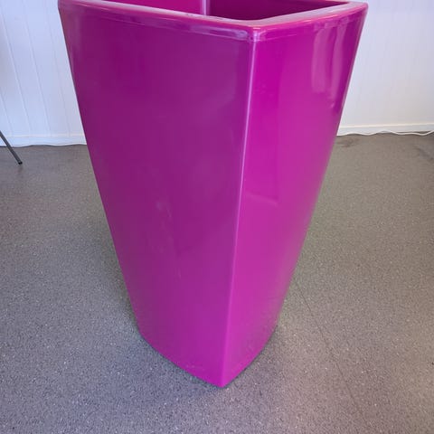 Blomsterpotter i lekker ny pink farge - for inne- eller utebruk. Det er nydelig å kombinere pottesett i pink og ceriserosa! Settet består av 2 potter i ulike størrelser. Pottene er produsert i fiberstone kompositt (sand/plast blanding) - blank finish. Innerpotter (H30 cm) i sort plast. Pottene er frostsikre; man bør sørge for drenering. Ved bruk utendørs, anbefaler vi å bore et hull i bunnen på både inner- og ytterpotter. For å sikre et lavt tyngdepunkt, anbefaler vi å bruke pukk eller stein i bunnen av ytterpottene. Fyll gjerne på med et lag lecakuler slik at innerpottene hviler på kulene. MÅL: Ø43 x H68 cm/Ø32 x H51 cm