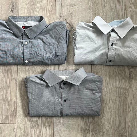 Skjorter fra ulike merker selges for 600 kr samlet. 200 kr stk. Skjorten fra Selected homme mangler en knapp, men kan sys på. Se bilder. Ser ut som den hvite skjorten har mørke flekker, men den har ikke det. Er nok bare lyset. Flere bilder kan sendes ved interesse.