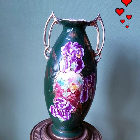 ANTIK OG PRAKTFULL VASE MED NYDELIG DEKOR PRODUSERT CA 1880