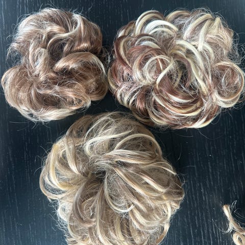 Håret er kjøpt hos Olimb frisør kr 4000. Brukt i en kort periode. Disse extensions sys på håret hos frisør.