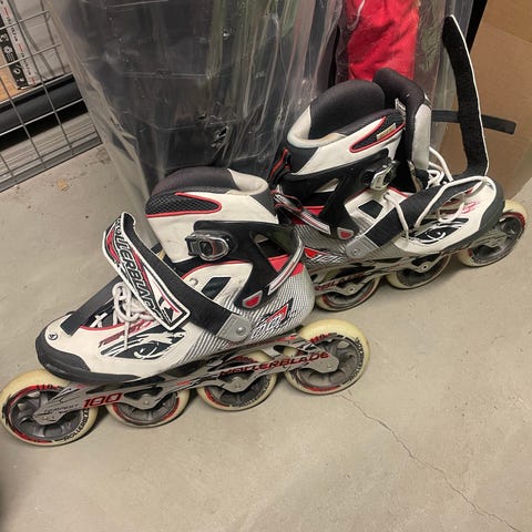 Originale Rollerblades (inline skates) fra sent 90-tall selges. Brukt, men pent brukt. Skøytelengde 29,5 cm som tilsvarer skostørrelse 45. Har vært brukt både til turer i byen og til rollerhockey.